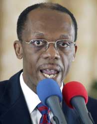 Haitian President Jean Bertrand Aristide speaks at what was his last formal press conference as President of his country, in this February 24, 2004 file photo. [Reuters]