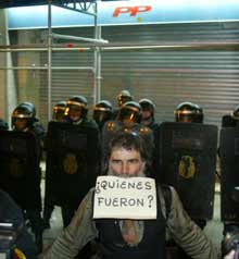 Two Spaniards of Indian origin also were called for questioning but are not expected to be arrested, Acebes said. Spanish citizens were among 33 people killed by suicide bombings that targeted Jewish targets and a Spanish restaurant close to the Spanish consulate in Casablanca, Morocco in May 2003. Those attacks were blamed on Salafia Jihadia, a secretive, radical Islamic group thought by Moroccan authorities to have links to al-Qaida. Twelve suicide bombers also died. Just months ago, a taped threat thought to be from al-Qaida terror chief Osama bin Laden had included Spain among countries that could be attacked "at the appropriate time and place." A confirmed Islamic extremist involvement in the Madrid bombings could play into the hands of Aznar critics who opposed sending 1,300 peacekeepers to Iraq. "If it was al-Qaida, this was a reprisal for sending troops to Iraq, where we have no business being," said Damian Garcia, whose 86-year-old father died in the bombings. The government had sought to dampen such speculation. Acebes said earlier Saturday that autopsies conducted on victims showed no signs of suicide bombings — a hallmark of Islamic militants. Pressure mounted for answers. The crowd outside the Popular Party headquarters chanted, "We want the truth before voting." Aznar's hand-picked candidate to succeed him, Mariano Rajoy, charged that the rally violated a law banning political demonstrations on the day before an election. "I hereby demand that the organizers of this illegal demonstration end this antidemocratic act of pressure against tomorrow's elections," he said. Hours earlier, the opposition Socialists charged that Rajoy himself violated the law by urging voters in a newspaper interview Saturday to give an absolute majority in Parliament. Rajoy was only 3-5 percentage points ahead of Socialist candidate Jose Luis Rodriguez Zapatero before opinion polls were stopped before the blasts in the last week of campaigning. The massive police hunt for the bombers focused in part on a stolen van found with seven detonators and an audiotape of verses from the Quran. A witness told Associated Press Television News he saw three suspicious men go from the vehicle to a station where three of the four bombed trains originated. The men wore coverings on their faces but "it wasn't cold ... I thought it was very strange," said the man, who did not want to be named. "They went into the train station ... I tried to follow one of them but I couldn't because he was very fast." The attack's lethal coordination — 10 explosions within 15 minutes — pointed to al-Qaida. The compressed dynamite used in the attacks, however, is favored by ETA, which has killed more than 800 people in four decades of bombings and assassinations to carve out an independent Basque homeland in northern Spain. ETA attacks have never been as deadly as the Madrid bombings and mostly targeted police and politicians. On Friday, a caller claiming to represent ETA told a Basque newspaper it was not responsible — the first time ETA is known to have denied an attack. The death of a man in a hospital overnight pushed the toll up to 200 Saturday. Of the 1,511 injured, 266 remained hospitalized — with 17 in critical condition. Since the Sept. 11, 2001, attacks in the United States, only the Bali bombing in Indonesia in October 2002 was deadlier, with 202 people dead. The Madrid attack was Europe's deadliest since the 1988 bombing of a Pan Am jetliner over Lockerbie, Scotland, killed 270 people. A steady stream of hearses carried coffins in and out of Madrid's biggest funeral home, Tanatorio Sur. The sprawling red-brick building normally has plenty of room, but was still overwhelmed Saturday. For lack of space, the coffins of a couple killed in the attacks were placed in a room normally used for staff meetings. "My son. Why?" repeatedly sobbed one elderly woman, leaning on relatives. |