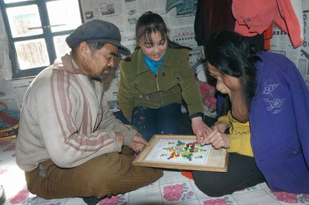 His talent in singing and dancing made him a popular performer whenever there were festivities in the village. Some of his fellow villagers even dubbed him the "party prodigy" because he was such an inspiration at those times. Ding was also a good story-teller. When night fell, children in the village would gather under the big willow tree in Ding's courtyard, to listen to Ding's wonderful renditions of stories from "Journey to the West" and "The Three Kingdoms." During the Spring Festival in 1983, Ding met a member of a singing troupe who promised to introduce him to a young woman living in Linjiang city. The matchmaker told Ding the woman was very nice but had a deformed face. "What's wrong with being ugly?" Ding replied humorously. "As long as she is a woman, filial to my parents and can bear me children, it'll be okay!" Even though the matchmaker had forewarned him, Ding was still shocked when he met Sun for the first time a few weeks later. Sun had been born with the left side of her face severely deformed. People avoided her and gave her queer looks from the time she was a child. Not surprisingly, Sun had never gone to school and seldom stepped out of her home to meet strangers. Ding was greatly moved by Sun's story. "We have both been unlucky in life, so probably we'll be a perfect match," said Ding, who accepted Sun in the end and agreed to marry her. Two days later, the two prepared to set out for Ding's home, but the bus driver was not willing to take them because of Sun's looks. So they had to walk the 70 kilometres to Ding's home in the snow. But the wedding was really great. All the villagers came to the ceremony and congratulated the newlyweds. Their marriage turned out to be more blissful than most people had expected. Ding was much happier than he used to be and worked in the fields from dawn to dusk. Sun stayed at home taking care of her elderly parents-in-law and doing the housework. But the lump on Sun's face continued to grow bigger and bigger, and Ding helped her comb her hair and wash her face and feet when he returned home every night. One day in May of 1991, Ding went home as usual but found that Sun had made a grand dinner for him. "Guess what, I have great news for you," Sun said. Ding noticed his wife had her hand on her stomach and realized at once. "We're having a baby, right?" Ding was so happy that his eyes filled with tears. On February 28, 1992, Sun gave birth to a baby girl. The couple called her "Xiao Yanzi," which means little swallow in Chinese. Conditions worsened The new life brought great happiness to the family, but Sun's health began to worsen after the birth of their daughter. Since they were too poor to afford proper treatment in the big city, Sun could only get simple medications from the small local clinic. By the summer of 1997, Sun had become totally paralyzed and was bedridden. In addition to taking care of his paralyzed wife, Ding had to work hard to make enough money to pay her medical bills - about 100 yuan (US$12) every month. For years, the family mostly lived on the corn and beans Ding planted, with an annual income of 7,000 to 8,000 yuan (US$845 to 966). During the slack season, Ding often went up into Changbai Mountains to collect medicinal herbs. Sometimes he was able to earn as much as 500 yuan (US$60) for a trip. As their daughter grew up and began to go to school, Ding was faced with further financial pressure. Misfortunes never come singly. Unwilling to be a burden to the family, Sun had tried to poison herself in May, 2003. When Ding returned home and found his dying wife, he carried her on his back and rushed to the clinic. Fortunately, they managed to revive her. When she finally came around, Ding held her in his arms and tried to comfort her: "Don't worry. Everything will be all right. Your being alive is our greatest joy." In the following months, Sun tried to commit suicide two more times the same year, but Ding intervened both times. "I must have done something good in my past life to deserve such a wonderful husband," said Sun when he saved her in October. Ding also won praise from his fellow villagers for his devoted love for his wife and family. His neighbour Duan Lianwen still remembers a scene from several years ago. One day he saw Ding and his daughter walking by. To cheer up the little girl, Duan gave them two ice lollies. As they were leaving, Duan heard Ding say to Little Swallow, "Take my lolly home and give it to mum." Even today, that touching scene is still fresh in Duan's mind. New hope After struggling in the dark for so many years, the family finally saw a light of hope. Ding and Sun's story was reported in the Changchun City Evening News in early February and soon drew the attention of people throughout the country. Ding received calls from hundreds of people from Hong Kong, Shanghai, Beijing and other cities. Many of the callers offered to help pay for Sun's medical treatment and help Ding's daughter complete her schooling. According to Li Jiali, a journalist from City Evening News who has been following Ding's story for over a month, the newspaper has so far received donations of over 49,000 yuan (US$5,917) for the family from all over the country. With the help of the local government, Sun, accompanied by Ding and their daughter, was sent to Zhongshan Hospital in Changchun on February 12 this year. After a physical exam, Sun started taking treatment for pulmonary tuberculosis. Ding is pleased to see that his wife is looking much better now after a month in hospital. "Her mind is clearer, and even more surprising, she can stand up by herself and walk a few steps with the help of others," Ding told China Daily. Their 12-year-old daughter has looked depressed ever since she arrived in Changchun, although she had never been to a big city before. She spends most of her time sitting beside her mother's bed and reading books. Luo Qi, the neurosurgeon in charge of Sun's case, said Sun can have surgery to rem