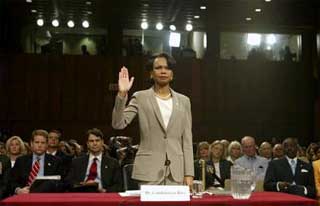 Rice's testimony, under oath and on live national television, came after weeks of White House resistance. Bush yielded in response to repeated public requests from members of the commission — as well as quiet proddings of Republicans in Congress — that an on-the-record rebuttal was needed in response to Clarke's explosive charges. The former White House aide testified last month that the Bush administration gave a lower priority to combatting terrorism than had former President Clinton, and that the decision to invade Iraq undermined the war on terror. In addition to raising questions about administration attention to the threat of terrorism, his remarks implicitly challenged a key underpinning of Bush's campaign for re-election. Rice's appearance was businesslike for the most part, first turning contentious when Ben-Veniste pressed her on what was known about the terrorist threat in advance of the Sept. 11 attacks. They interrupted one another repeatedly, the interrogator and the witness. "I would like to finish my point," she said when he began speaking while she was. "I didn't know there was a point," he replied. Under questioning, Rice acknowledged that she had spoken too broadly once when she said that no one had ever envisioned terrorists using planes and crashing them into buildings. She said that aides came to her within days and said there had been reports or memos about that possibility, but that she hadn't seen them. Pointing a finger of blame, she said that senior officials "have to depend on intelligence agencies to tell you what is relevant." She also directly challenged one of the claims made by Clarke, who said earlier that the administration had moved slowly on some of the recommendations he and others made before the attacks. "I'm now convinced that while nothing in this strategy would have done anything about 9-11, if we had in fact moved on the things that were in the original memos that we got from our counterterrorism people, we might have even gone off course," she said. Asked to rebut Clarke's claim that Bush pressed him to find an Iraq connection to the suicide hijackings, Rice said she did not recall such a discussion but that "I'm quite certain the president never pushed anybody to twist the facts." She added, "It is not surprising that the president would say 'What about Iraq?'" But she said that when Bush's top advisers met after Sept. 11, none recommended action against Iraq before taking military action against Afghanistan. In her prepared testimony, Rice neither criticized Clarke nor offered a point by point rebuttal of his appearance. She said she made the unusual decision to retain him when the new administration came into office, saying, he was an "expert in his field, as well as an experienced crisis manager." She said confronting terrorists competed with other foreign policy concerns when the president came into office, but added that the administration's top national security advisers completed work on the first major national security policy directive of the administration on Sept. 4. The subject, she said, was "not Russia, not missile defense, not Iraq, but the elimination of al-Qaeda." |