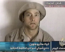 "Some of our groups managed to capture one of the American soldiers, and he is one of many others. He is being treated according to the treatment of prisoners in the Islamic religion and he is in good health," the gunman said on the tape, a copy of which was dropped off at the U.S. Embassy in Doha, Qatar.