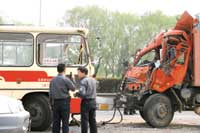 The truck collided with two mini-buses when it began driving against traffic at 9:28 a.m. today. Acting on reports, local police organized efforts to intercept the truck. However, Yang's truck broke through four police blockade lines. When it came to a toll collection center on Badaling Expressway, the truck turned around abruptly and again drove toward oncoming traffic. To ensure the safety of passers-by, police evacuated people present and shot into the air as a warning. But the truck bumped into two police cars, a water tank and a bus parked at the roadside. Finally, police shot him dead. Investigation into the case is still going on. |