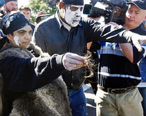 Painted in traditional tribal makeup and wearing possum skins, Moopor stood silently and cast the curse by pointing a small bone at Howard as he climbed into a waiting car. Howard smiled and waved at Moopor before leaving. Moopor refused to speak with reporters, citing unspecified Aboriginal cultural reasons. It was not clear what effect the curse was intended to have on the prime minister. Geoff Clark, the chairman of the soon-to-be scrapped Aboriginal and Torres Strait Islander Commission, said the curse was a warning for Howard. "Mr. Howard can ... ignore the message at his own peril and be put under a curse up until the next federal election," Clark told reporters. The commission, widely referred to as ATSIC, advises the government on indigenous issues. With 17 commissioners elected by Aboriginal voters and a budget of more than $600 million, it administers government-funded projects aimed at improving their lives. But Howard said on April 15 that his government plans to abolish the 14-year-old commission because it has failed to improve the lot of most Aborigines, who remain the poorest, sickest and least-educated minority group among Australia's 20 million people. In place of ATSIC, the government wants to appoint a panel of Aboriginal experts to advise it on indigenous needs. |