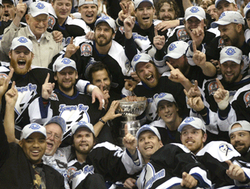 The Flames, threatening to become one of the most unlikely champions in NHL history, were held to only seven shots in a dismal first two periods before making a frantic late surge started by Craig Conroy's power-play goal midway through the third. Lightning coach John Tortorella insisted throughout the finals that his team would win only if his best players outplayed Calgary's and they did exactly that. Fedotenko scored on goals created by Conn Smythe winner Brad Richards and Vincent Lecavalier and goalie Nikolai Khabibulin held off Calgary's late flurry while Flames star Jarome Iginla was again held scoreless. Tampa Bay joined the 2001 Avalanche as the only teams to overcome a 3-2 deficit in the finals in 30 years, with the Lightning finally ending their record 13-game streak of alternating winning and losing by winning Game 6 on the road in overtime and Game 7 at home. Maybe it's only coincidence, but in each series a 22-season veteran who had never won the Cup finally did so. Colorado's Ray Bourque did it in 2001, and 40-year-old Dave Andreychuk finally lifting the Cup after playing a record 1,758 games without winning it. Bourque called the Lightning's Tim Taylor on Saturday to offer advice on how to deal with coming back from the deficit, and to wish Andreychuk good luck. Now the question is how long the Lightning will rule. The NHL's labor agreement runs out September 15, and all signs point to a lengthy lockout that will significantly delay or shut down the 2004-05 season.
