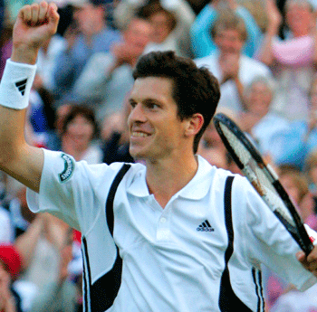 "He was making life pretty difficult for me," said Henman, who held his nerve to win the first-set tiebreak with an exquisite lob to prompt a football-style punching of the air by delighted supporters. The Briton, inspiring fans to keep their St George's flags flying despite the quarter-final defeat of the England soccer team at Euro 2004, reeled off 13 points in a row at the end of the second set and looked in total command. His energy dropped in the third, however, and he looked listless and flat. "I'll need to play a bit better but I'm into the second week," Henman said. "You can certainly lose a tournament in the first week but you can't win it." After going 2-0 down in the fourth, Henman acknowledged the "people" had helped him to raise his game. He said if it were his choice he would always keep the tournament running through the middle Sunday to encourage "buzz and excitement." The 29-year-old Briton, who has reached the semi-finals on his favourite surface here four times, then unleashed his attacking game and won six successive games for victory. Henman will be looking to overcome big-serving Australian Philippoussis, who beat him at the same stage here in 2000, in the fourth round on Monday, for a place in the last eight. Federer, Roddick through Andy Roddick and Roger Federer reached the round of 16 at Wimbledon while thousands of fans lined up to be part of the third "People's Sunday" in 127 years. The top-ranked Federer hit 44 winners and advanced with a 6-3, 6-4, 6-3 win over Thomas Johansson. There were about 8,000 people still in lines outside when Federer rifled a forehand return on match point after 1 hour, 37 minutes. Centre Court was full by the time when defending women's champion Serena Williams beat Spain's Magui Serna 6-4, 6-0 in 58 minutes. The top-seeded Williams looked subdued with both her mother and father watching from the stands, but still had 11 aces and 29 winners with only one double-fault and 11 errors. Second-seeded Roddick beat fellow American Taylor Dent 6-3, 7-6 (6), 7-6 (1). Yesterday's Wimbledon early results Women's fourth round Ai Sugiyama (JPN x11) bt Tamarine Tanasugarn (THA) 6-3, 7-5; Maria Sharapova (RUS x13) bt Amy Frazier (USA x31) 6-4, 7-5; Lindsay Davenport (USA x5) bt Vera Zvonareva (RUS x12) 6-4, 6-4; Karolina Sprem (CRO) bt Magdalena Maleeva (BUL x21) 6-4, 6-4. Women's third round Silvia Farina Elia (ITA x14) bt Virginia Ruano Pascal (SPA) 2-6, 6-4, 7-5; Tatiana Golovin (FRA) bt Emmanuelle Gagliardi (SWI) 6-3, 2-6, 6-3 Men's fourth round Sebastien Grosjean (FRA x10) bt Robby Ginepri (USA x27) 6-2, 6-2, 7-6 (7/4) |