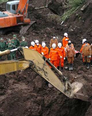 Five people are still missing and rescuers said the possibility for their survival is slim. The disaster occurred in the wee hours Friday in Zuojiaying, a village in Nayong County. Four of the five bodies rescuers found Tuesday were children, the youngest being less than one year old, deputy county head, Zhou Xunrong, said. Rocks are still falling from the mountain and experts from the Ministry of Land and Resources will work with local rescuers Wednesday to find a solution to prevent the cracked rocks from falling, Zhang Jianjiang, an engineer with the provincial environment supervision center, said. |