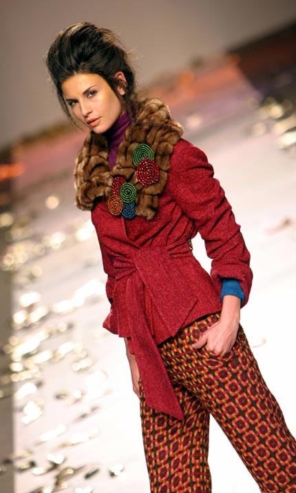 A model presents an outfit from the fall-winter 2005/2006 collection by Mercedes de Miguel during the Pasarela Gaudi fashion show in Barcelona, February 3, 2005. The Pasarela Gaudi show runs until February 4. [Reuters]