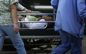 Outside the hospital, about two miles from the courthouse, a growing crowd of about 50 fans and reporters gathered. Police officers guarded all entrances, stopping anyone who appeared to be with the news media, while hospital officials put up white fabric to hide what was going on in the emergency room.