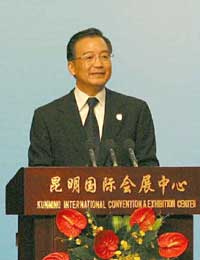 Since the GMS program was initiated in 1992, the six member states of Cambodia, China, Laos, Myanmar, Thailand and Vietnam have jointly launched 119 projects in transportation, energy, telecommunications, trade and investment, tourism, environment, human resources and agriculture, which helped promote the economicand social development in the region, benefited tens of thousands of people, particularly the poor, and contributed to peace in thisregion and beyond. Sitting next to each other along the Lancang-Mekong River, the six GMS partners, some of which are still quite underdeveloped and suffering from various social problems like drug, human trafficking and spread of epidemics, share similar cultures and have developed sound political ties and close people-to-people contacts. These "have necessitated and enabled our mutually beneficial cooperation," Wen asserted at the ceremony, attended by the prime ministers of the other five GMS countries and nearly 300 officialsand delegates. Titling his speech "a stronger GMS partnership for common prosperity," which is also the theme of the summit, Wen called on all GMS partners to carry forward the cooperation on a long-term basis. During the summit, the prime ministers of the six countries areexpected to pass a leaders' declaration, or the Kunming Declaration, to review the ongoing GMS programs and outline cooperation plans in the future. They will also sign a number of GMS cooperative documents on transportation, information superhighway construction, power trade operating and animal epidemics prevention. Also on Tuesday, the Chinese government issued its second country report on
