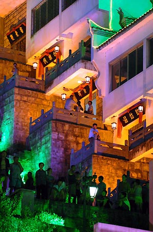 The night scene of the Quzi Street, named after the patriotic poet Qu Yuan (A.D.340-A.D.278) , is shown in this photograph taken on July 15, 2005 in the Guizhou town, which is near the famed Three Gorges of the Yangtze River. [Xinhua]