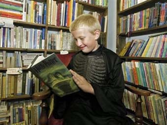 Nick Bledsoe,10, can't wait to start reading his copy of the sixth Harry Potter installment 'Harry Potter and the Half-Blood Prince' by author J.K. Rowling shortly after midnight, when the book was released for sale, Saturday, July 16, 2005 at the Book House in St. Louis.[AP]
