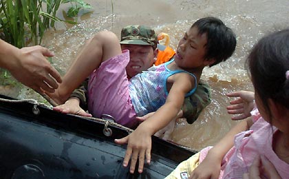 Heavy rains force 200,000 to evacuate (newsphoto) Updated: 2005-08-05 07:41