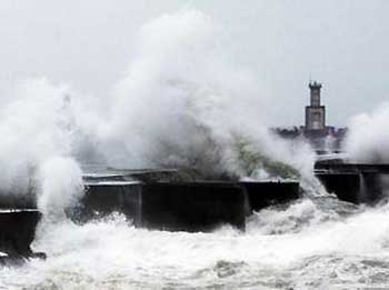 Taiwan's southern coast in Kaohsiung October 2, 2005. Typhoon Longwang