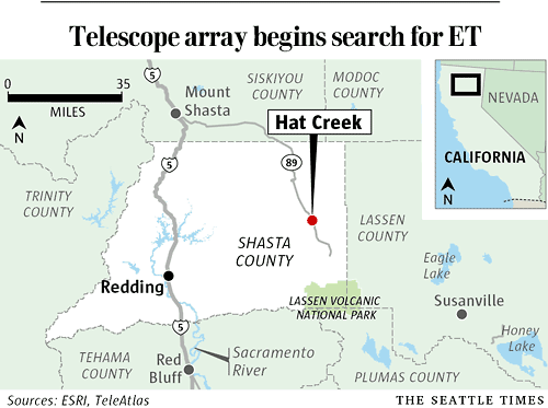 | 艾倫射電望遠(yuǎn)鏡所安置的位置。 |