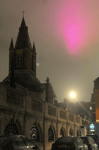這團(tuán)粉紅色光出現(xiàn)在倫敦上流住宅區(qū)的上空,困惑的旁觀者伸長(zhǎng)脖頸仰望這難得一見(jiàn)的神秘景觀。這些光線在空中飄移,最后逐漸分散直至徹底消失。