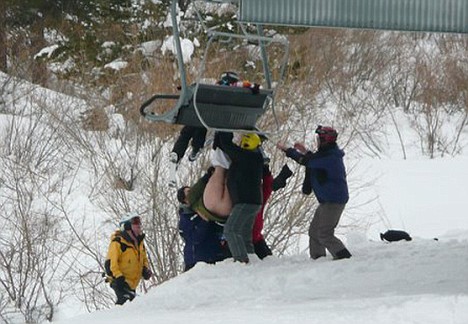 不幸的滑雪男子被工作人員救起