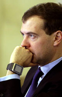 中國日報網(wǎng)消息:據(jù)國際在線消息,據(jù)韓國《朝鮮日報》1月5日報道,與俄羅斯前總統(tǒng)、現(xiàn)任總理普京不同,俄羅斯現(xiàn)任總統(tǒng)梅德韋杰夫是一個追逐時尚潮流的人。日前在訪問莫斯科的俄羅斯科學(xué)院時,媒體抓拍到梅德韋杰夫戴著時尚的腕表手機。