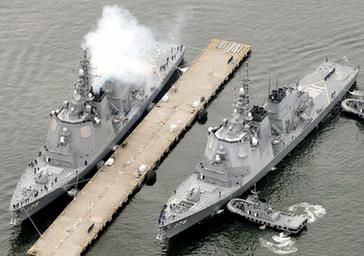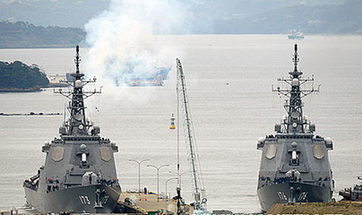 日本海上自衛(wèi)隊(duì)宙斯盾艦“金剛”號(hào)(左)和“鳥?!碧?hào)