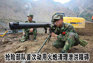 唐家山搶險部隊首次動用火炮清理泄洪障礙(圖) |