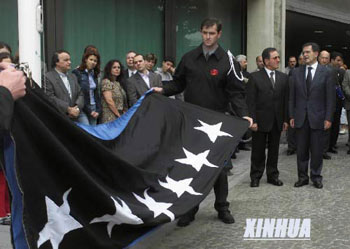 2002年7月23日,在歐洲煤鋼共同體成立50周年紀念日上,歐盟主席普羅迪(前右一)等歐盟官員參加降旗儀式。該組織于當(dāng)日正式結(jié)束歷史使命,F(xiàn)在的歐盟就是從歐洲煤鋼共同體發(fā)展而來。