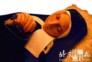 “交錯(cuò)在胸前的雙手很完美。”“毫無尸體腐爛的氣味!贬t(yī)生的結(jié)論是圣女貝爾納黛特的遺體完好無損!懊利惖碾p手握著一串生銹的念珠,胸口上的十字架上也布滿了銅銹!
