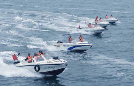 海警支隊的巡邏艇在進行編隊巡邏演練