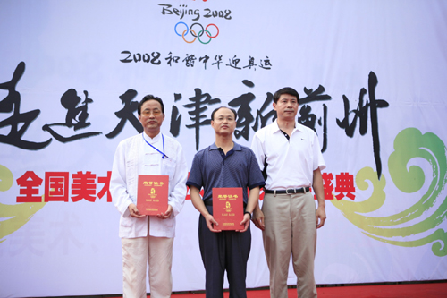 中國日報網(wǎng)環(huán)球在線消息:以弘揚中華優(yōu)秀文化,推動和諧社會建設(shè),升華奧運精神為主題,“2008和諧中華迎奧運全國美術(shù)、書法、攝影大展頒獎盛典”29日下午在天津薊縣隆重舉行。