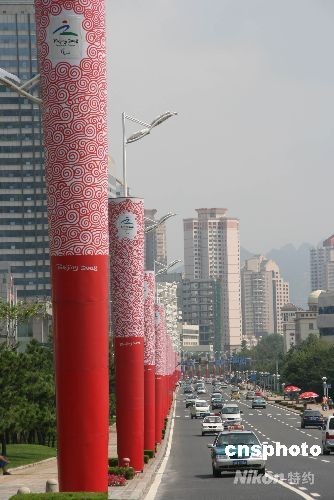 9月1日,在殘奧會(huì)即將到來之機(jī),青島街頭被裝扮一新。青島東海一路的“祥云火炬路燈”及福娃奧帆標(biāo)志構(gòu)筑成青島市一道靚麗的風(fēng)景線,吸引了眾多中外游客的眼球。中新社發(fā)尤中原 攝