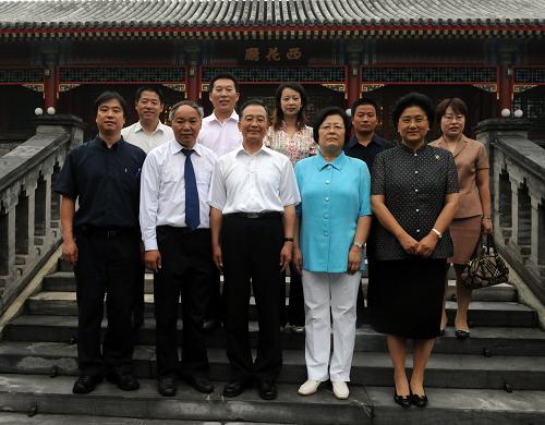 溫家寶在中共中央政治局委員、國務(wù)委員劉延東的陪同下,和教師們一起參觀西花廳。新華社記者 姚大偉 攝