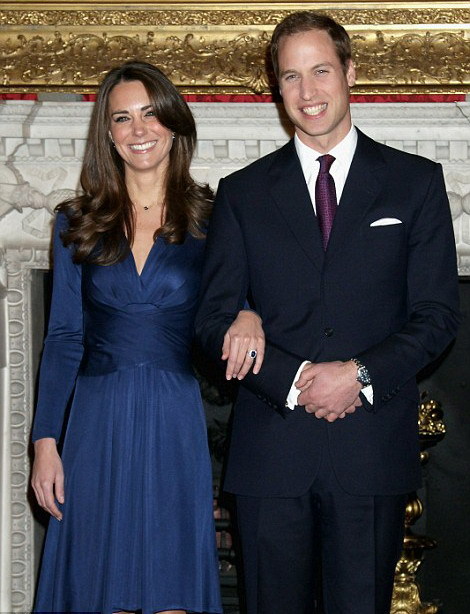 凱特宣布和威廉王子訂婚時(shí)穿了一件端莊的藍(lán)色連衣裙。