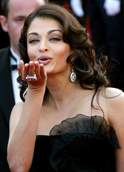 Indian actress Aishwarya Rai blows a kiss as she attends the world premiere