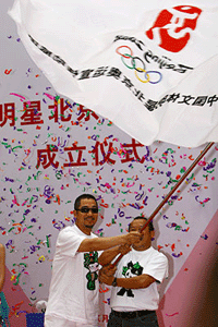 Star promotion group of 2008 Games started [ 2006-06-02 09:03 ] 5月30日,“中國(guó)文體明星北京奧運(yùn)宣傳助威團(tuán)”成立,明星奧運(yùn)宣傳助威團(tuán)匯集了內(nèi)地、港澳臺(tái)及海外華人中文藝、體育界極具知名度的百余位人士,其宗旨是聚合眾星之力為北京2008年奧運(yùn)會(huì)和殘奧會(huì)助威,并致力于向世界推廣中華文化。北京奧組委執(zhí)行副主席兼秘書(shū)長(zhǎng)王偉同志為團(tuán)旗揭幕并向助威團(tuán)授旗,國(guó)家體育總局副局長(zhǎng)、北京奧組委執(zhí)行副主席于再清在成立大會(huì)上致辭。