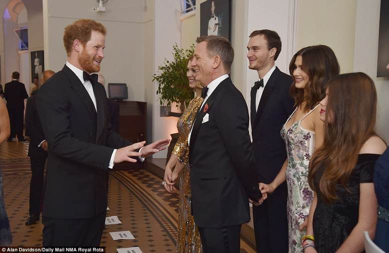 與哈里王子寒暄,手還是沒有松開,邦德先生臉上一副幸福的表情啊