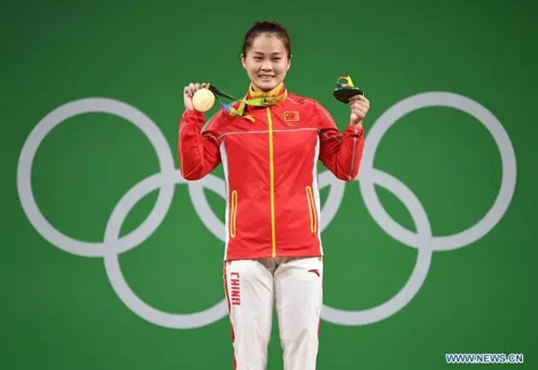 Deng Wei of China broke two world records in the women's 63kg weightlifting to win the gold medal with a total of 262kg at the Rio Olympics on Tuesday.