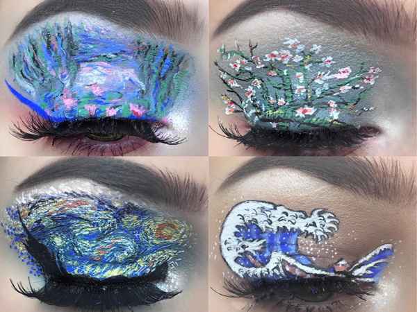 For most people, Vincent Van Gogh's The Starry Night or Hokusai's The Great Wave off Kanagawa evoke famous paintings on display in museums or tucked away in private collections. For London-based makeup artist Stefania Atupe, they're the direct inspirations for some of her best looks on Instagram. According to Mashable, Stefania got the idea to recreate some of her favorite works on her eyelids after playing around with animal-print eye makeup.