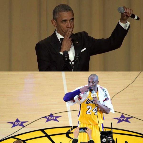 其實(shí)這是科比在NBA告別戰(zhàn)上的經(jīng)典動(dòng)作,他本人還在推特上高興地回應(yīng)了奧巴馬的模仿。