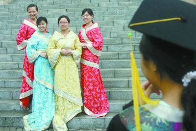 該學(xué)院團(tuán)委書記孫曉波介紹,中國大學(xué)并沒有統(tǒng)一規(guī)定畢業(yè)生穿什么服裝,但越來越多的大學(xué)采用歐洲舶來的學(xué)位服,以至于常能看到工科、文科畢業(yè)生穿錯學(xué)位服等事情。孫曉波說,“漢服是世界傳承時(shí)間最長的民族服飾,飄逸灑脫,符合中國人的傳統(tǒng)思維模式及文化價(jià)值取向,我們認(rèn)為,以漢服為本民族的學(xué)士服非常合適”。(徐富盈)