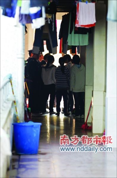 警察在事發(fā)宿舍門口調(diào)查。本報(bào)記者 陳偉斌 攝