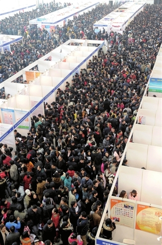 2月5日,本市節(jié)后的首場綜合招聘會在農(nóng)展館舉行。300多家企業(yè)計(jì)劃提供4000余個(gè)崗位,但現(xiàn)場涌入了3萬求職者,比去年的首場招聘會增加1.5倍。其中,近一半為應(yīng)屆畢業(yè)生。
