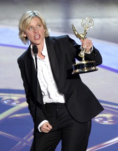 Talk show host Ellen Degeneres thanks her fans after being named the Best Talk Show Host for "The Ellen Degeneres Show" at the 33rd annual Daytime Emmy Awards at the Kodak Theatre in Hollywood, California April 28, 2006. (Reuters)