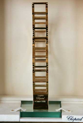 The Trophee Chopard award, which honours talented newcomers within the film industry, is seen on display as preparations continue on the eve of the start of the 59th International Film Festival in Cannes May 16, 2006. The festival opens May 17 and runs until May 28. (Reuters)