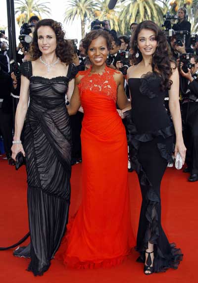 Actresses Andie McDowell (L), Kerry Washington (C) and Aishwarya Rai (R) attend the world premiere of "The Da Vinci Code" at the opening night of the 59th Cannes Film Festival in Cannes, France, May 17, 2006.(Reuters)