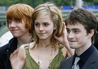| Actors Daniel Radcliffe (R), Rupert Grint (L), and Emma Watson pose during a photocall to promote the new film 'Harry Potter and the Order of the Phoenix' at County Hall in London, June 25, 2007. [Reuters] |