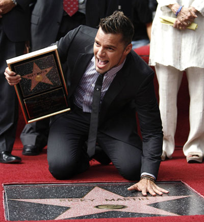 Puerto Rican singer Ricky Martin touches his star on the Walk of Fame in Hollywood, California October 16, 2007. Martin is the 2,351st celebrity to be honored with a star on the Walk of Fame. (Reuters)