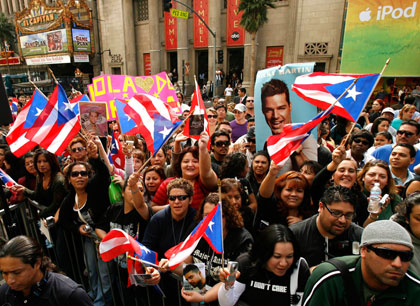 Fans wave Puerto Rican flags as they wait for singer Ricky Martin to be honored with a star on the Walk of Fame in Hollywood, California October 16, 2007. Martin is the 2,351st celebrity to be honored with the star. (Reuters)