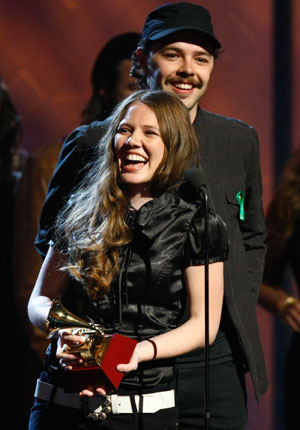 Members of the group Jesse and Joy from Mexico accept the Grammy for Best New Artist at the 8th annual Latin Grammy Awards in Las Vegas November 8, 2007. (Agencies)