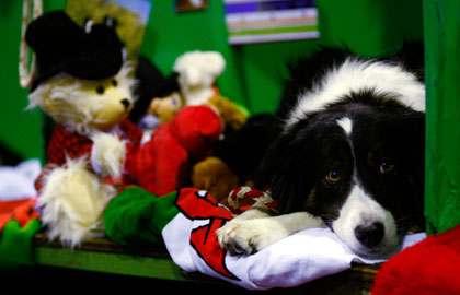 A working sheepdog waits in the stalls before going into the parade ring at the Crufts dog show in Birmingham, central England March 6, 2008. Crufts was founded in 1891 by entrepreneur Charles Cruft and has long been established as one of the world's greatest dog shows. (Agencies)