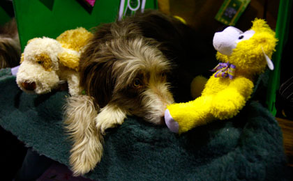 A bearded collie waits in the stalls before going into the parade ring at the Crufts dog show in Birmingham, central England March 6, 2008. Crufts was founded in 1891 by entrepreneur Charles Cruft and has long been established as one of the world's greatest dog shows. (Xinhua)
