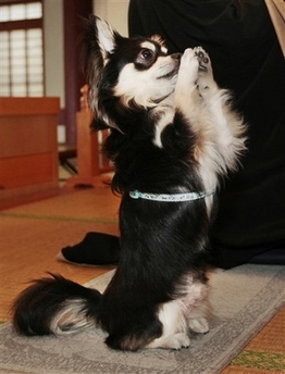 One and a-half years old Chihuahua dog 'Conan' prays with his owner and chief priest Joei Yoshikuni during a morning pray at the Shuri-Kannondo temple in Okinawa islands, southwestern Japan, Monday, March 24, 2008. (Agencies)