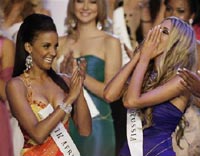 Contestants at Miss Universe "Beatuy Contest" in Johannesburg, South Africa on December 13, 2008.Women still have a complex and contradictory relationship with their own image according to a poll released on Tuesday that found 25 percent of those questioned would rather win the "America's Next Top Model" TV show than the Nobel Peace Prize.